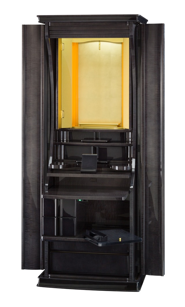 ■本体寸法 高151.5cm× 幅45cm × 奥行42cm ■厨子寸法 高52cm× 幅33cm ■色調 ウォールナット ■仕様 お厨子開閉電動式、LED照明